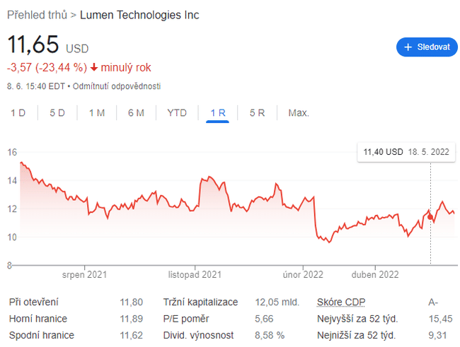 Aktsiad on langenud koos ülejäänud tehnoloogiasektoriga. Lumen on viimase aasta jooksul kaotanud 20% oma väärtusest.