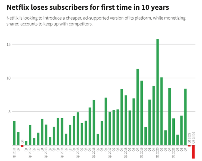 Maailma domineeriv voogedastusteenus on viimastel kuudel sattunud surve alla, kuna inflatsioon, Ukraina sõda ja tihe konkurents mõjutavad tellijate arvu kasvu. Pärast tellijate arvu vähenemist esimeses kvartalis ennustas Netflix jooksvaks perioodiks veelgi sügavamat kahjumit.