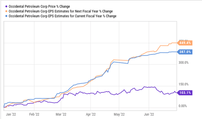 Vaatamata üldiselt keerulistele turutingimustele on Occidentali aktsia hind sel aastal enam kui kahekordistunud. Pole raske mõista, miks investorid on põnevil. Seoses energiahindade tõusuga on ootused selle aasta kasumile suurenenud ja järgmise aasta oodatava kasumi hüpe on veelgi suurem.