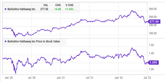 Kui Berkshire'i aktsia tõusis 2022. aastal, oli selle raamatupidamislik hind 1,6 lähedal. See selgitab, miks ettevõte ostis esimeses kvartalis tagasi ainult 3,2 miljardi dollari väärtuses aktsiaid. Selle asemel leidis Buffett investeeringuid, mida ta pidas kasumlikumaks. Nüüd aga läheneb aktsia taas Buffetti 1,2-kordse bilansilise väärtuse piirmäärale.