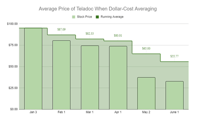 Juuni alguses oleks teie keskmine kulu veidi alla 56 dollari. Teie koguinvesteering oleks jäänud umbes 1000 dollarile, kuid nüüd, mil Teladoci aktsia kaupleb umbes 35 dollari juures, oleksite langenud 37% 61% asemel. Teie investeering oleks olnud 630 dollarit väärt, võrreldes 390 dollariga, kui oleksite aasta alguses teinud ainult ühe suure investeeringu. See on endiselt kahjum, kuid sektori väljavaateid arvestades on see palju väiksem ja loodetavasti ajutine. Alati ei toimi see nii, kuidkeskmistatud dollarikulude arvestamine võib olla hea strateegia, kui aktsia on heade põhialuste ja paljutõotavate kasvuväljavaadetega.