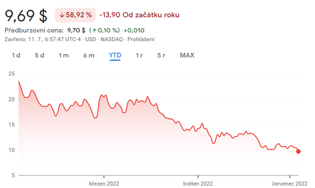 Pärast börsile minekut on aktsia kiiresti tõusnud, saavutades kõrgeima taseme üle 40 dollari. Aktsia püsis sellel tasemel või selle lähedal suurema osa 2021. aastast, kuid hakkas eelmise aasta septembris langema. Alates aasta algusest on aktsia langenud 59%.