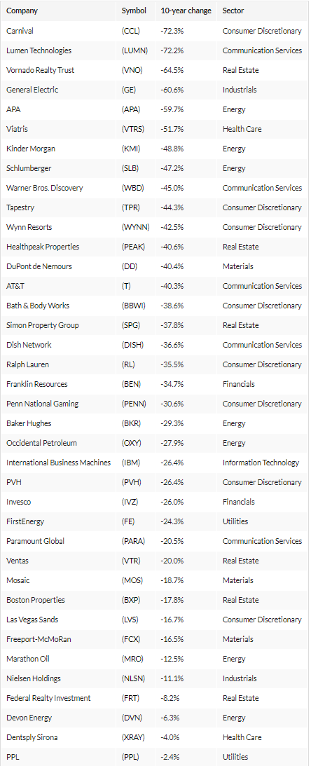 Need on aktsiad, mis on viimase 10 aasta jooksul kõige rohkem langenud. Kas teil on mõni neist?